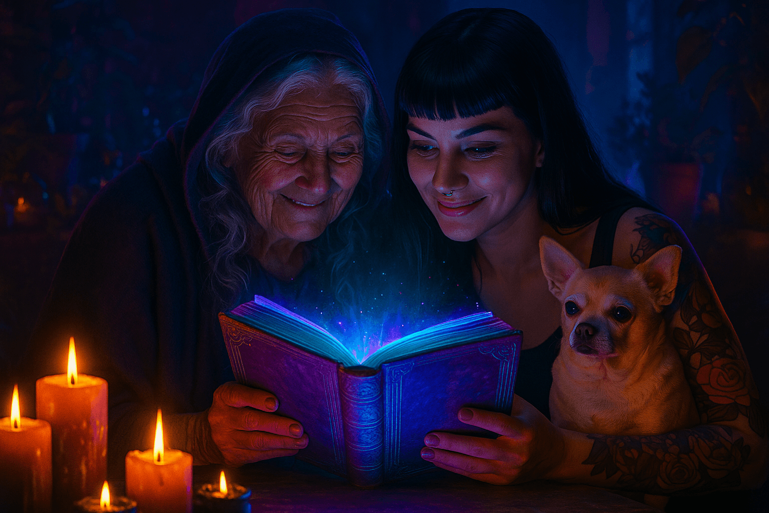 Ambas somos sacerdotisas y nos hemos preparado por muchos años (más la abu) en el sendero del camino espiritual, holístico, mágico, natural, manifestación desarrollo personal entre otros.