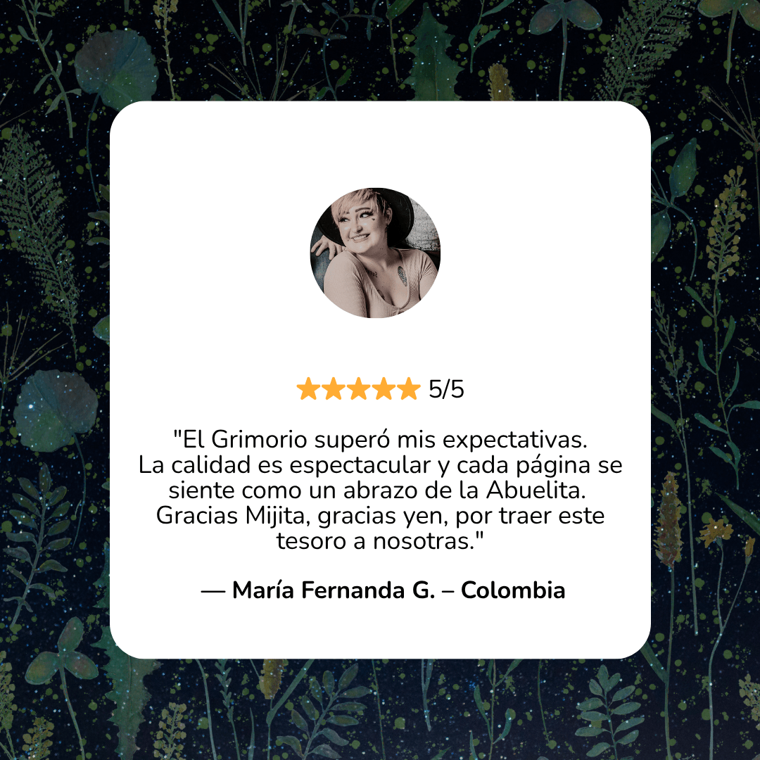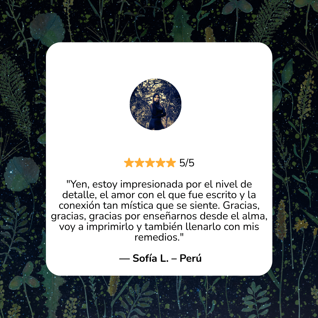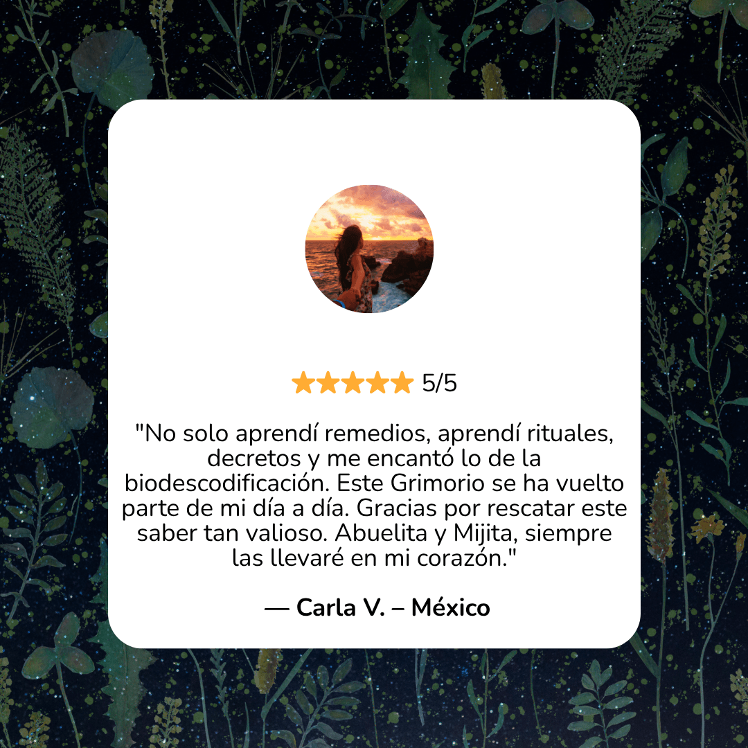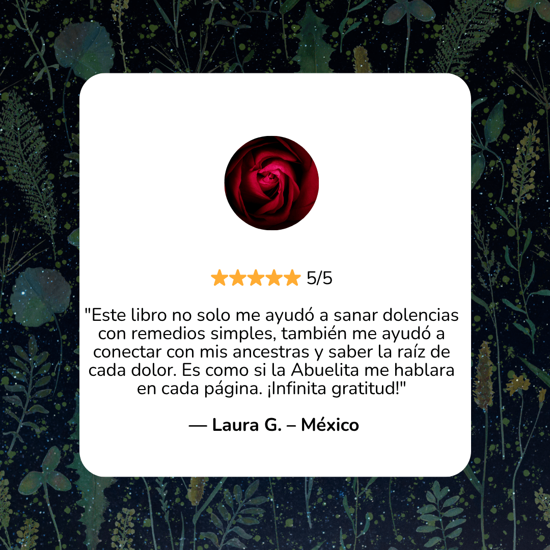 Nota Importante: El Grimorio de Remedios Ancestrales es un recurso de apoyo basado en prácticas naturales, tradicionales y espirituales. No pretende sustituir la medicina convencional ni reemplazar el diagnóstico o tratamiento médico profesional. Si tienes una condición de salud grave o persistente, te invitamos a consultar siempre con un profesional de la salud de confianza. La medicina natural y la medicina convencional pueden coexistir en armonía cuando se eligen con conciencia y amor propio.Este libro es un legado para reconectar con el saber de las abuelas, pero la decisión final sobre tu bienestar siempre debe ser tomada desde la información y el autocuidado responsable.